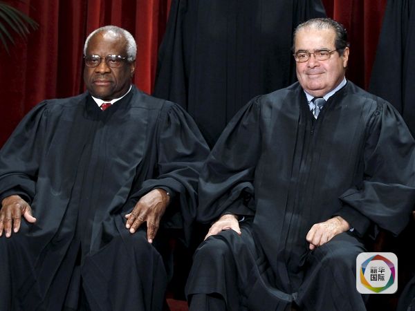 美国最高法院大法官克拉伦斯·托马斯(左)和安东宁·斯卡利亚。(图片来源:新华/路透)