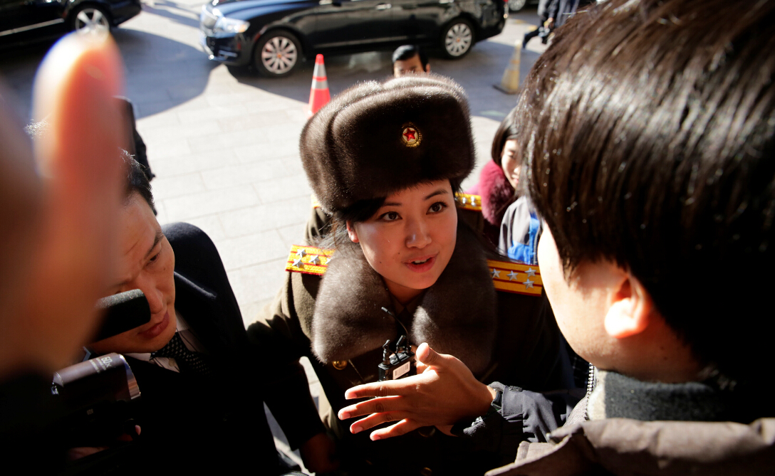 2015年12月11日,北京,朝鲜牡丹峰乐团结束在国家大剧院的排练回到酒店。