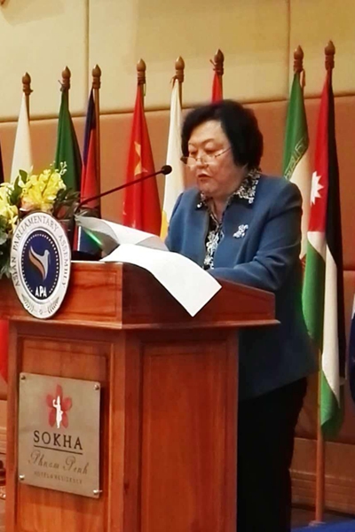 新当选为亚洲议会大会(APA)经济和可持续发展委员会主席的赵白鸽博士发表演讲。