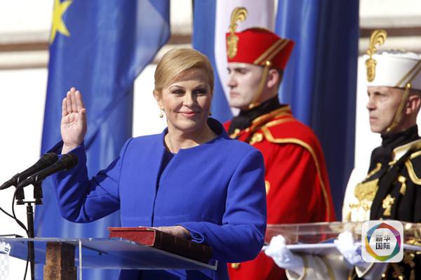 1月11日,在克罗地亚举行的总统选举第二轮投票中,46岁的反对党的女性候选人格拉巴尔-基塔罗维奇在当天的总统选举第二轮投票中,赢得约50.4%的选票,以微弱多数胜出,成为克罗地亚历史上首位女总统。基塔罗维奇曾任克罗地亚外交部长、克驻美国大使、北约负责公共外交的副秘书长等职。图为基塔罗维奇(中)在就职典礼上宣誓。
