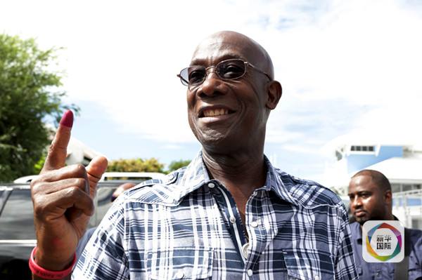 9月7日,特立尼达和多巴哥反对党人民民族运动党在众议院选举中获得41个席位中的23席,赢得选举。66岁的该党领导人基思·罗利当选总理。他曾任农业、土地和海洋资源部长,计划和发展部长,贸易、工业和消费事务部长等职。图为基思·罗利在投票后展示墨水标记的手指。