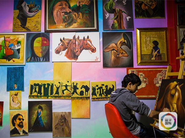 阿拉·侯赛因在孤儿院的画室里作画。(新华社记者陈序摄)