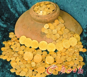 打捞出的西班牙沉船宝藏。(资料图)