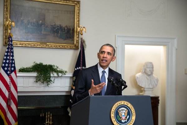 12月12日,美国总统奥巴马在白宫就《巴黎协定》发表讲话。(白宫官方图片)