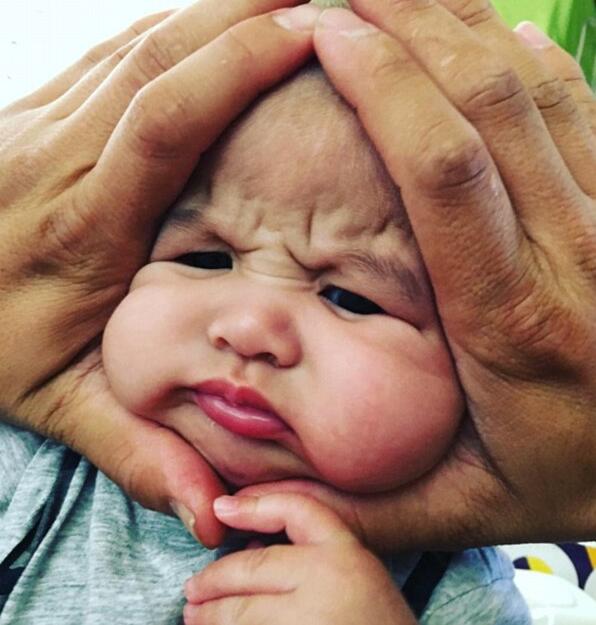 “饭团娃娃”火爆日本网络 宝贝被挤脸显萌态(组图)
