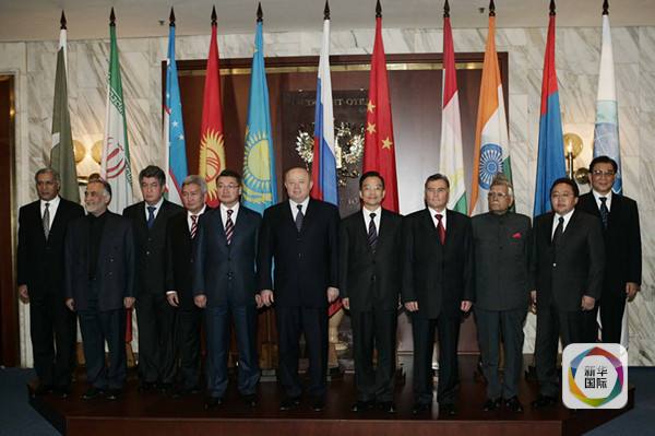 2005年10月26日,在莫斯科出席上海合作组织成员国总理第四次会议的各国代表团团长及上海合作组织秘书长合影。(新华社记者刘建生摄)