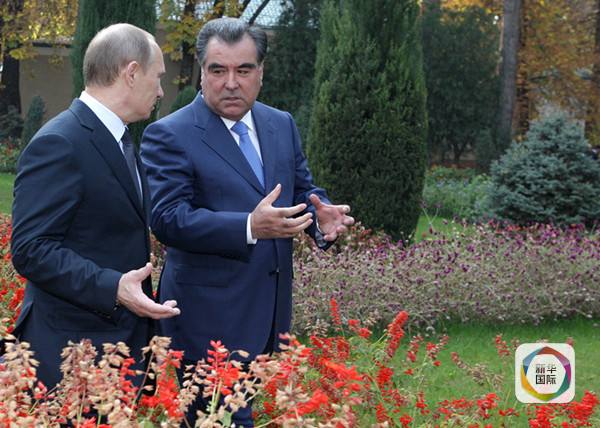 2010年11月25日,上合组织成员国总理第九次会议在塔吉克斯坦首都杜尚别举行。俄罗斯总理普京与塔吉克斯坦总统拉赫蒙(右)在杜尚别总统官邸散步。(新华社/俄新)
