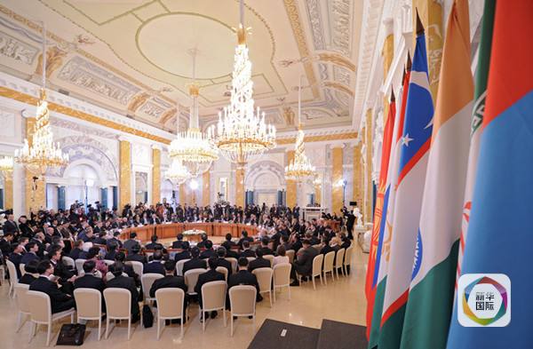 2011年11月7日,上海合作组织成员国政府首脑(总理)理事会第十次会议大范围会谈在俄罗斯圣彼得堡康斯坦丁宫举行。(新华社/俄新)