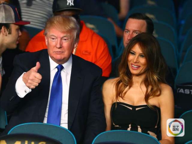 2015年5月2日,特朗普与妻子梅拉尼娅在观看拳击比赛。