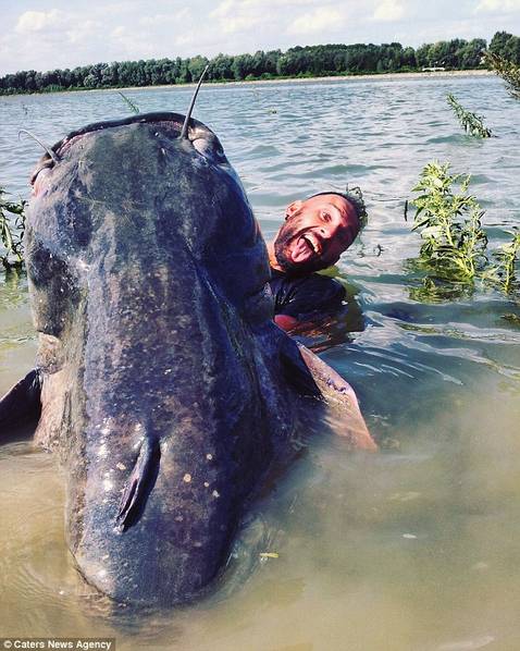 巨型“怪物”!意渔民钓起120公斤重鲶鱼(组图)