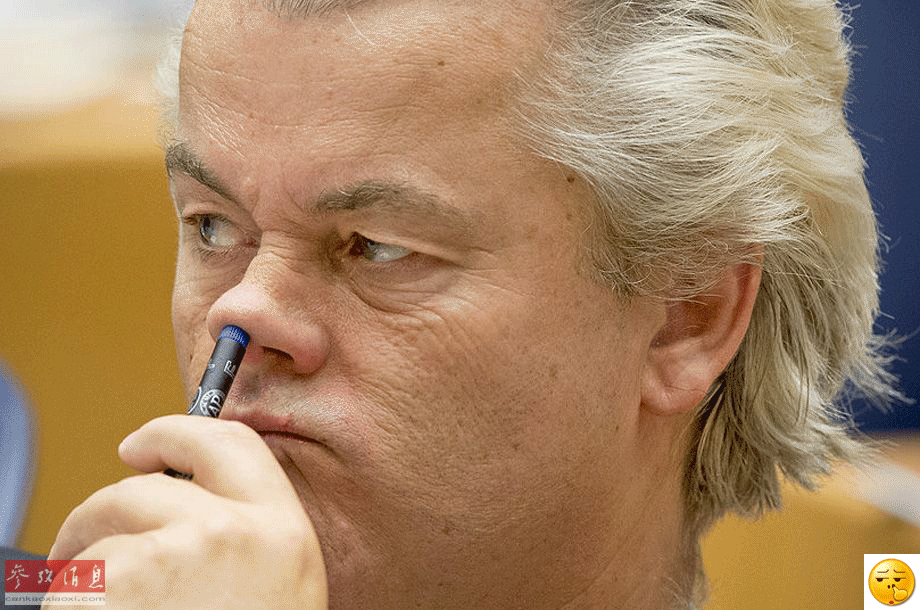 【抠鼻】9月17日,荷兰海牙,荷兰自由党领导人基尔特-威尔德斯出席议会,用笔搓鼻子十分滑稽搞笑。