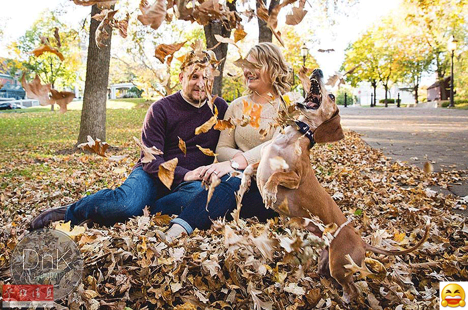 【抓狂】据美国Boredpanda网站10月28日报道,主人梅根和克里斯每次拍照的时候,宠物路易都会在旁边弄出一点小动静:时而从镜头前突然跳起,时而搅起一大堆树叶挡住主人脸部,摆好的甜蜜造型和布置好的场景都被它毁于一旦。