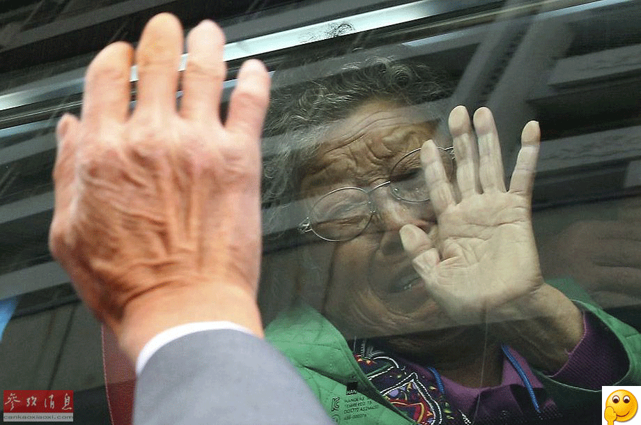 【再见】10月26日,在朝鲜金刚山,一名韩国母亲同自己的朝鲜儿子作别。数百名朝韩离散家属20日在朝鲜金刚山首次团聚,其中不少人是时隔60多年才终于见面。韩联社报道,来自96个韩国家庭的389人当天从江原道海滨城市束草启程,搭乘16辆客车前往金刚山景区,与141名朝鲜亲属团聚。这是2014年2月以来,朝韩首次举行离散家属团聚活动。此次活动分两轮举行,第一轮从20日至22日,第二轮从24日至26日。1950年至1953年的朝鲜战争令半岛南北数百万人骨肉分离。由于朝韩技术上处于战争状态,时隔60多年仍无法直接联络。自2000年时任韩国总统金大中与朝鲜最高领导人金正日实现历史性会晤以来,南北举行多次团聚活动,2万多名离散家属得以短暂团聚。新华社/美联