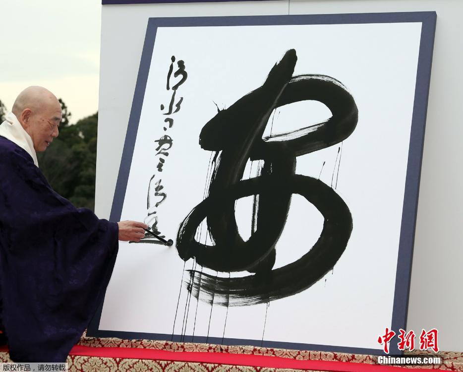 当地时间12月15日,日本京都清水寺住持森清范挥毫写下2015年度汉字“安”。据日媒报道,反映日本社会热点的年度汉字15日下午在京都清水寺公布。“安”字获得12万9647票,当选2015年的日本年度汉字。