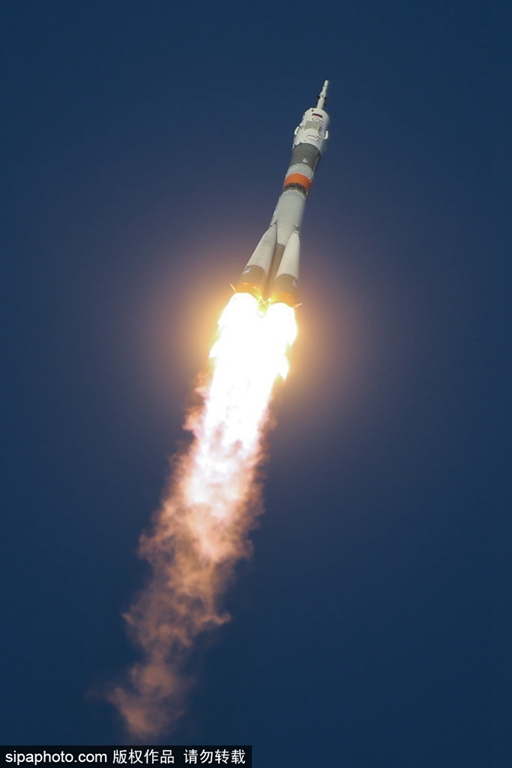 当地时间2015年12月15日,哈萨克斯坦拜科努尔,联盟号TMA-19M”宇宙飞船搭载46/47批次远征国际空间站成员前往太空。(图片来源:希帕中国)