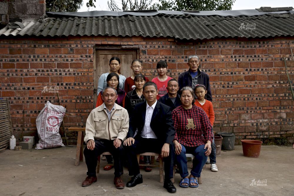 肖基国一家人的全家福。照片中的肖基国,情不自禁间又摆出奥巴马的样子:伸出手臂,眉头紧皱,像极了在沉思中的美国总统。