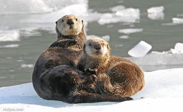 海獭是群居动物,通常会成百只一起漂浮。它们不时扣紧爪子,保证大家不漂散开。