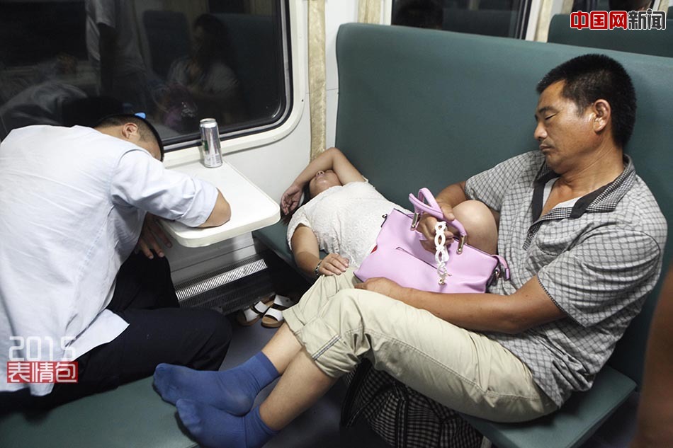 2015年8月1日,黑龙江黑河,三名乘客挤在一个狭小的空间睡觉。