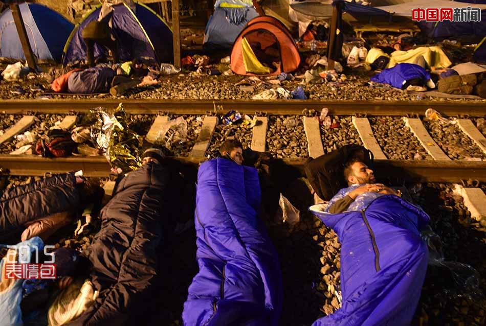 在克罗地亚边境铁轨席地而睡。克罗地亚当局毫无办法,被迫关闭了一个检查站。