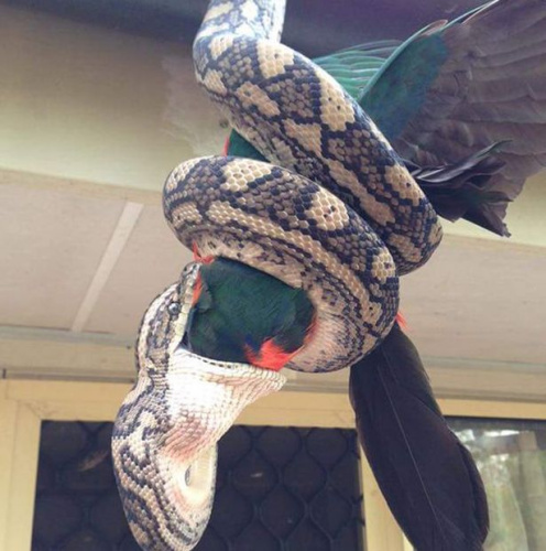 澳大利亚捕蛇人实拍蟒蛇生吞鹦鹉全过程(组图)