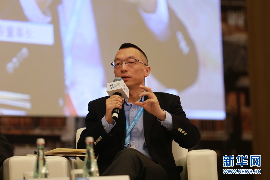 12月17日,第二届世界互联网大会“互联网文化与传播论坛”互联网时代的文化传承与创新议题在乌镇华美宫举行,互动百科创始人兼董事长潘海东发言。新华网 祝立铭 摄