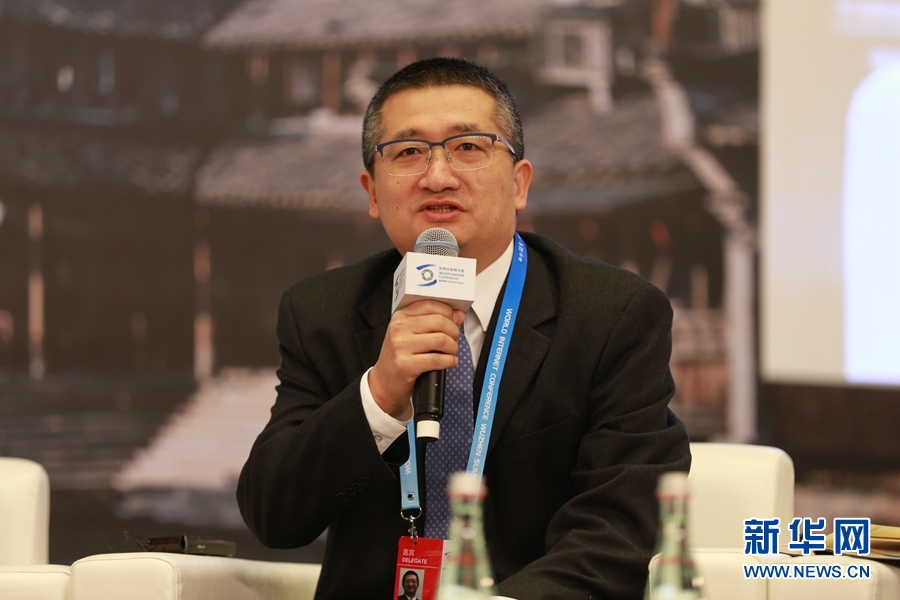 12月17日,第二届世界互联网大会“互联网文化与传播论坛”互联网时代的文化传承与创新议题在乌镇华美宫举行,光明网总裁杨谷发言。新华网 祝立铭 摄