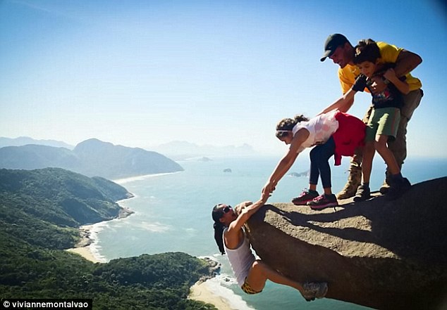 倒挂悬崖照被揭穿 安全摆拍引游客竞相模仿(高清组图)