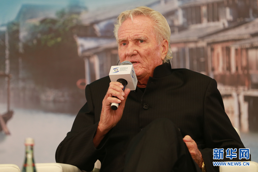 12月17日,第二届世界互联网大会“互联网文化与传播论坛”互联网时代的文化传承与创新议题在乌镇华美宫举行,美国蒙纳瑞克斯好莱坞电影公司总裁、《神秘中国》导演克里斯蒂·里比发言。新华网 祝立铭 摄