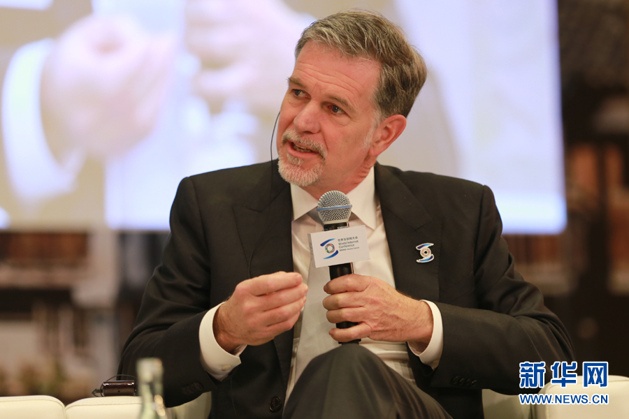 12月17日,第二届世界互联网大会“互联网文化与传播论坛”互联网时代的文化传承与创新议题在乌镇华美宫举行,美国奈飞集团首席执行官里德·黑斯廷斯发言。新华网 祝立铭 摄