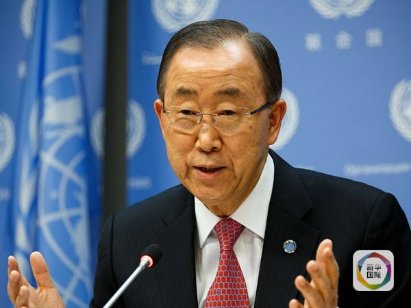 潘基文在新闻会上发表讲话。(新华社记者李木子摄)