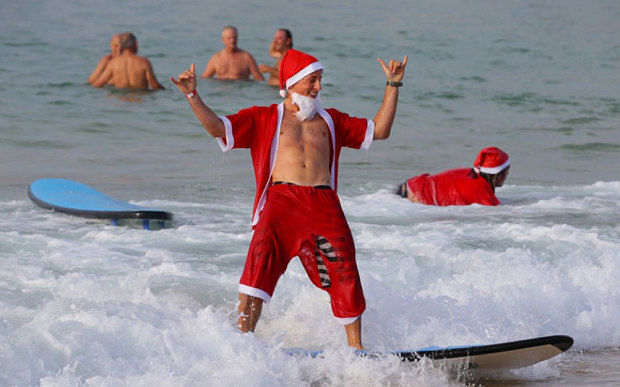 320名圣诞老人澳海滩集体冲浪破世界纪录(高清组图)