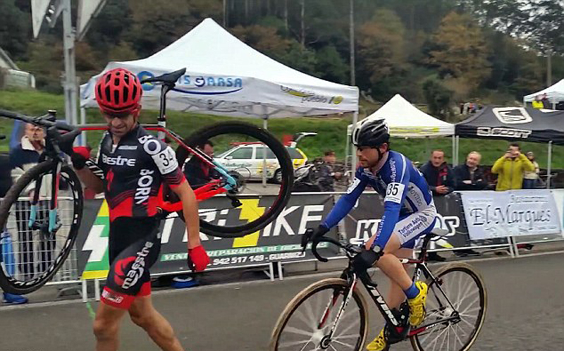 自行车手终点前爆胎扛车完赛 对手减速跟随拒绝超越(组图)