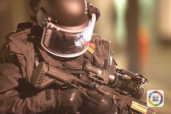 图为法国警方和特种部队1月7日午夜在法国兰斯市对袭击《沙尔利周刊》的嫌犯展开大规模行动。(新华社发)