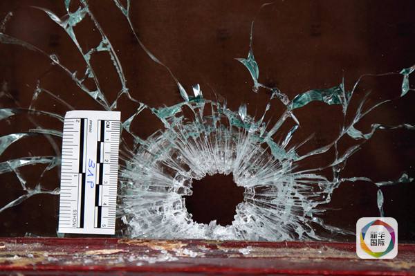 图为巴黎Le Carillon餐厅被子弹打爆的玻璃。(新华社/俄新)