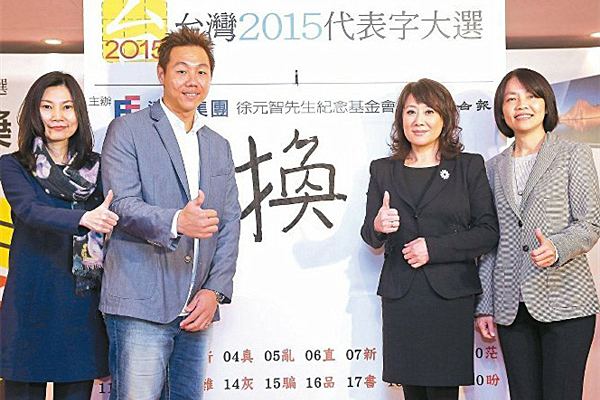 台湾《联合报》与远东集团徐元智先生纪念基金会合作举办的“台湾2015代表字大选”8日晚公布,“换”在50个候选字中拔得头筹,获得逾13800票,当选为今年的年度代表字。