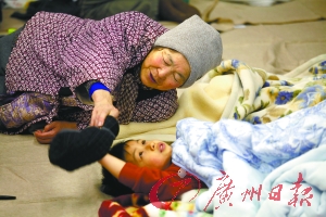 日本一名老祖母在照顾小孙子。 (资料图片)