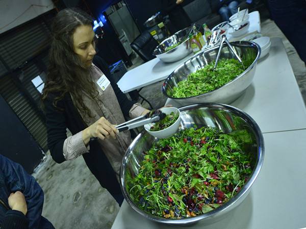 工作人员请记者品尝刚刚收获的新鲜蔬菜做的沙拉,这些蔬菜看起来跟超市中常见绿叶蔬菜嫩苗一样,味道也没有区别,只不过更新鲜更嫩。农场执行总裁、联合创始人罗森伯格说,这些种植架的高低大小都可以根据场地随意组合,目前农场生产250种蔬菜和香料,采用与普通农场一样的蔬菜种子,一年生产周期为20至30次。