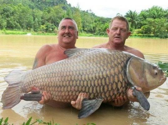 10、男子在泰国钓到150磅暹罗鲤鱼