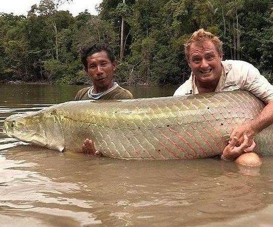 英国垂钓爱好者汤森在南美洲圭亚那钓上来这条巨大的野生巨滑舌鱼,重250磅(约113公斤)。英国垂钓爱好者汤森在南美洲圭亚那钓上来这条巨大的野生巨滑舌鱼,重250磅(约113公斤)。野生巨滑舌鱼是世界上最大的淡水鱼。名叫汤森(Steve Townson)的这位垂钓爱好者在埃塞奎博河钓上来的这条鱼,重达250磅(约113公斤,226斤)。汤森仅用了2磅的水虎鱼作诱饵,就将这条大鱼钓了上来。不过汤森钓上来的这条鱼并没有破纪录,最近另一名垂钓爱好者钓上来一条重339磅的巨滑舌鱼,保持着最新的世界纪录。