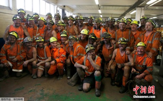 结束最后一天的工作后,煤矿工人们在厂房里合影留念。始于300年前工业革命的英国煤炭工业至此退出历史舞台。
