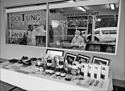 29岁的少彭·阿依住在离工厂两公里处的萨满基山村。他已经在该项目工作9年,现在是咖啡种植园的工头。少彭告诉记者,为帮助村民实现经济自立,项目本身目前只经营了640公顷咖啡种植园,另外1600公顷咖啡种植园则外包给了当地村民,“为了激发村民对咖啡园的主人翁意识,这个项目以每年每棵0.5泰铢(1泰铢约合0.03美元)的价格,向村民收取咖啡园的租金。咖啡果收成之后,村民既可以把它们卖给项目,也可以卖给其他咖啡收购商”。