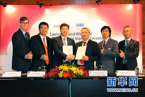 12月18日,乐视移动智能总裁冯幸在与泰国网络运营商赢赢网旗下的多赢IPTV签署销售代理协议。新华社发(拉亨摄)