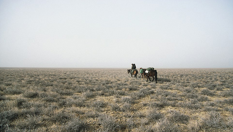 科普带领他的旅行队穿过哈萨克斯坦巴尔喀什湖北部的不毛之地。