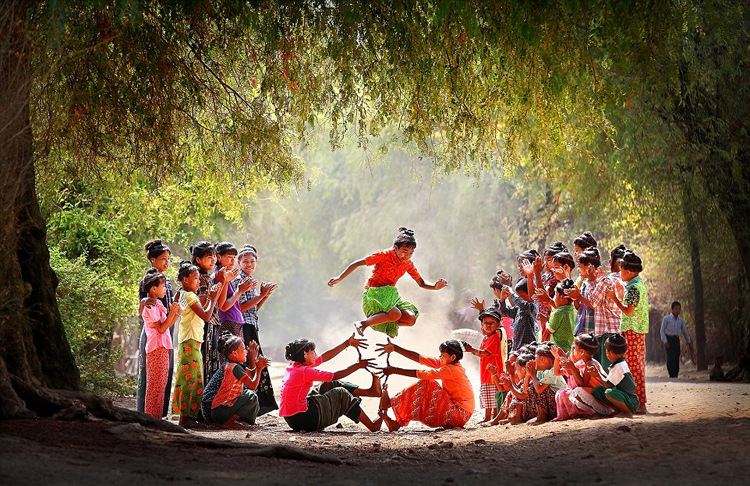 孩子们在路上嬉戏。