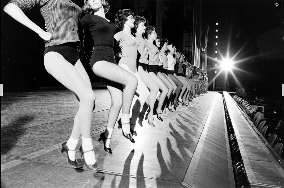 1960年,火箭女郎们在台上排练同步高踢腿动作。