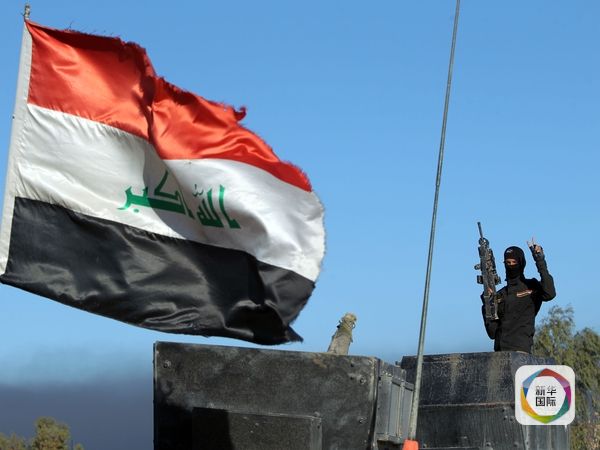 拉马迪市,伊拉克安全部队士兵挥动着胜利手势。(图片来源:新华/法新)