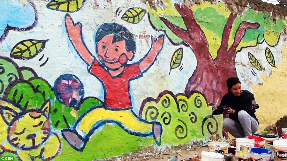 秘鲁总人口约3,100万,其中贫穷人口约有700万,贫穷比率22.7%衡量贫富差距的吉尼系数高达46,高于世界平均的39。图为儿童参加活动在这堵墙上涂鸦。