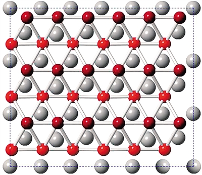 硼烯在银表面的结构示意图(红色,暗红色表示硼原子的起伏)。 钟欣 摄