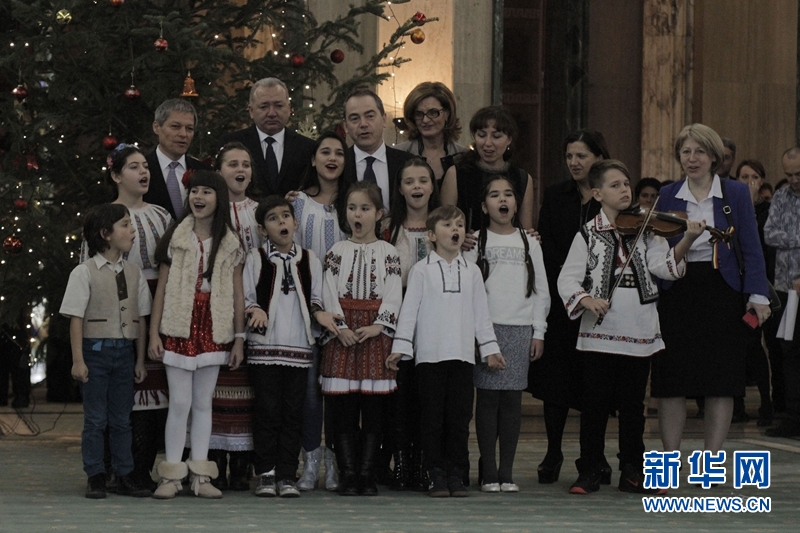 罗总理乔洛什(后排左一)与孩子们以及青体部队官员们合影。当天,罗政府为在哥本哈根夺得女子手球世锦赛季军的罗国家女子手球队举行表彰仪式。新华网发 (佩特雷斯库摄)