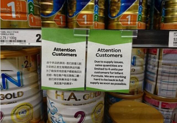 澳超市涉歧视:中文布告限买2罐奶粉 英文限4罐